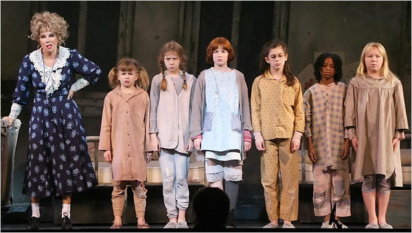 En Noviembre de 2012 se estrenó la hasta ahora última reposición en Broadway, dirigida por James Lapine, con una puesta en escena que parecía de un montaje para llevar de gira y un vestuario muy mejorables para mi gusto, pero con Anthony Warlow como Oliver Warwacks, repitiendo el papel que ya interpretó y grabó en disco en Australia y es con el que debuta en Broadway, acompañado de Kathie Finneran como Mrs. Hannigan, que a pesar de estar espléndidos, ambos dos, cada vez que salen las niñas en escena, se roban el show y cerró tras poco más de un año en cartel.
