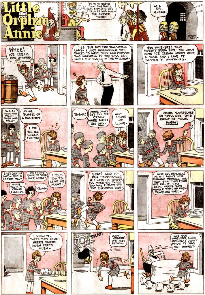 Little Orphan Annie es un poema de 1885 que inspiró a Harold Gray, para que construyese la serie de tiras animadas basadas en Annie la huerfanita, como se la llama en algunos países sudamericanos y que se estuvieron publicando diariamente en la prensa, desde el 5 de Agosto de 1924 hasta el 13 de Junio de 2010. La popularidad del personaje llevó a Charles Strouse a escribir el musical Annie, que catapultó dicho personaje a ser conocido en todo el mundo.