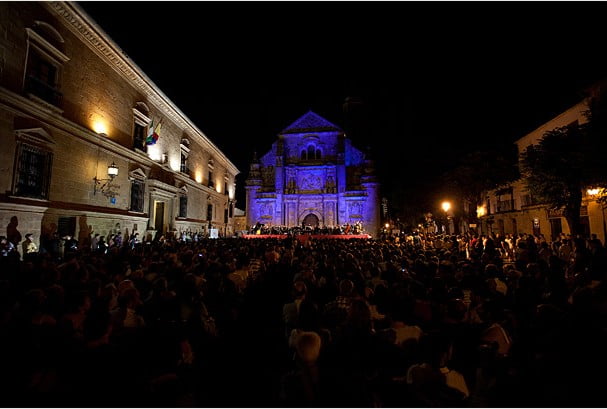 Por la noche teníamos el tercer concierto que bajo el título de “EUROPA, EUROPA” se ofrecía al aire libre, de forma gratuita para todo el mundo, aunque había reservada una sección de sillas para los congresistas. El emplazamiento era espectacular. La iluminación jugando con los relieves de la Iglesia fue original y la orquesta de Málaga con Arturo Díez Boscovich al frente nos hacía prometérnoslas la mar de felices.