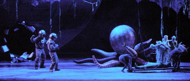 El primer acto dura una hora y treinta y cinco minutos y el segundo una hora y cinco minutos, que con el descanso de veinte minutos llegaba a las tres horas de función, vamos como uno de “los grandes” musicales anglosajones, pero es que además en éste pasaron volando, porque los números musicales, lo vistoso de los decorados y vestuario, las coreografías, lo divertido de muchas situaciones, el sinfín de aventuras que les pasa a nuestros héroes en busca del tesoro del capitán Grant, hace que pasen sin sentir. Mi enhorabuena a Paco Mir por atreverse con un género considerado algo “demodé”, consiguiendo que la gente le pierda el miedo y lo vea como lo que es un entretenimiento musical muy digno.