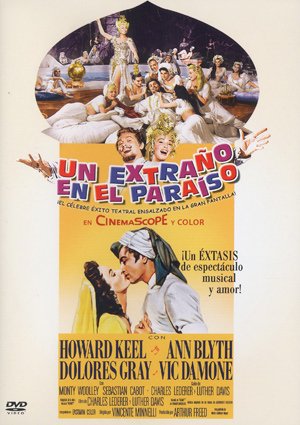 Existen varias versiones para el cine de Kismet, si bien solo la de 1955 producida por Metro Goldwyn Mayer, se basaba en el musical teatral. Estrenada en España como “Un extraño en el paraíso” fue dirigida por Vincente Minnelli y aunque no estuvo acreditado parece que también intervino Stanley Donen. La película sufrió muchísimos cambios con respecto al musical teatral, tratando de hacerla más comedia puesto que la operetta ya no tenía el éxito de temporadas anteriores. Estuvo protagonizada por Howard Keel (Hajj), Ann Blyth (Marsinah), Dolores Gray (Lalume) y Vic Damone (Calipha). El resultado no satisfizo demasiado a ninguno de sus autores, siendo salvable algunos números coreográficos, los decorados suntuosos marca de Minnelli y la música de Borodin.