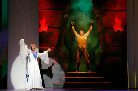 Las canciones, desde la potente “Stand up”, en plan himno gospell, al principio del musical, hasta el “I have fire” final, son valga la redundancia, un caramelo para la Carmello, que pone toda la carne en el asador, tanto cantando como interpretando, saltándosele lás lágrimas en un par de ocasiones, de hecho ella es lo mejor del musical. George Hearn está completamente desaprovechado y el mayor problema reside en la historia, que a no consigue que nos involucremos en ella y sólo sobrevive por las canciones, que terminan demasiadas veces con una nota alta, mantenida largamente por la protagonista, en busca del aplauso del público, que por supuesto se lo damos.