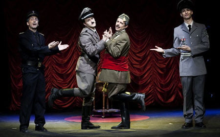 Es sano poder reírse hoy, más de setenta años después de aquellos dos personajillos bajitos y con bigote, entrando en esta comedia de ficción, que nos quiere dar una disparatada versión de lo acontecido en aquel pequeño pueblecito y las consecuencias que tuvo para toda la humanidad, con guiños al musical y coreografías que estimulan aún más la carcajada del público, pero sobre todo un texto muy elaborado e intelegente, defendido por unos actores estupendos, que con sus escasísimos medios, no pretenden otra cosa más que hacernos reír y vaya si lo consiguen. Toda una sorpresa. Necesitamos más propuestas así, donde la escasez de medios se compensan con trabajo e imaginación.