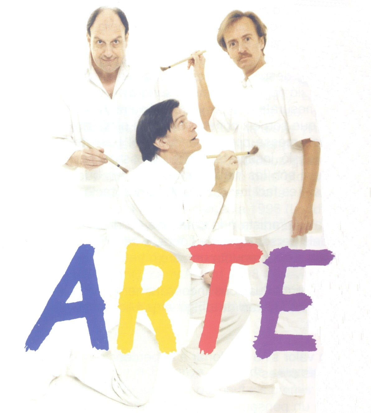 La obra se estrenó en Madrid en Junio de 1998 y fue un exitazo, permaneciendo dos años y medio en cartel, siendo nominados los tres actores al mejor actor del año, premio que ganaría Carlos Hipólito. El argumento nos presenta a tres amigos: Sergio (Hipólito), que ha comprado un cuadro de un cotizadísimo pintor moderno, por el que ha pagado una suma astronómica. Marcos (Pou), que no sale de su asombro, porque el famoso cuadro, no es más que un lienzo blanco, por más que Sergio se empeñe en decirle, que según desde el ángulo que se mire, se pueden apreciar unas diminutas líneas, con otras tonalidades de blanco e Ivan (Flotats), el amigo conciliador que huye de cualquier enfrentamiento y trata de contentar a todos.