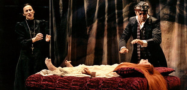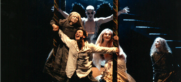 Decisión difícil y criticada en algunos sectores, si bien era de agradecer, ya que la historia ganaba muchos enteros con aquella música majestuosa arropando la acción y los actores cantando en vivo las canciones. Hablando de actores, nos encontramos con un trío masculino de lujo: Mikel Fernández (Nicholas), Carlos Gramage (Dr. Valdemar) y Roger Pera (Roderick), mientras que Rosa Galindo (Madeline), con su voz lírica que confería a su personaje cierto aire de locura y Teresa Vallicrosa (mayordoma).