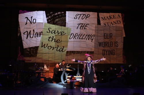 “DEAR WORLD” es un musical basado en la obra teatral de Jean Girandoux, titulada La Folle de Chaillot, estrenada en 1945, a los dos años de la muerte del autor. Diríamos que se trata de una sátira bienintencionada, protagonizada por una mujer mayor, bastante excéntrica, que vive en París, a la que toman por loca, pero que sabe muy bien lo que quiere y lucha contra los especuladores que quieren perforar el suelo, para hacerse ricos con el petróleo que se supone que hay bajo el asfalto.