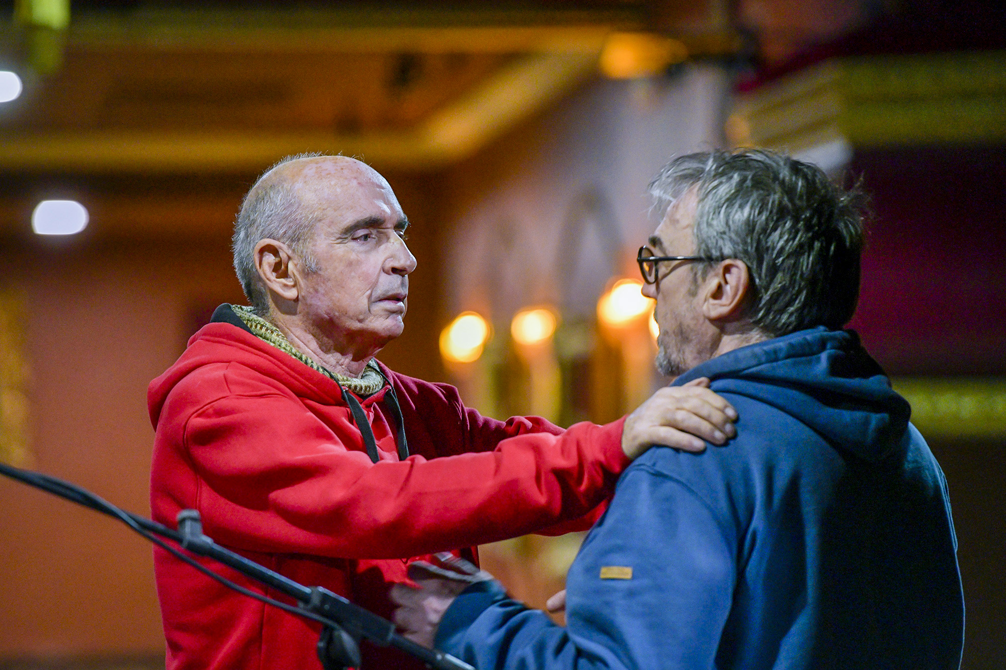 “Vaixell de Grécia” arrancó los primeros bravos, a la que seguiría la romántica “Geografía”, para cambiar de nuevo la energía del auditorio al arrancarse con la peleona “Cançoneta”, conocida por todos como “La gallineta”, para pasar a desarmarnos con el canto de amor de Llach a su público en “Amor particular”, a la que seguiría la pegadiza “Bambolines” y la sentida “Abril 74” dedicada a la revolución de los claveles de Portugal, para redescubrirnos otro temazo que bordaron “Dibuix” (Dibujo), para continuar con el clásico “Que tinguem sort” (Que tengamos suerte), o la dedicada a su madre “Un nùbol blanc” (Una nube blanca), terminando con toda la cuerda a fondo, dando vida a su “País petit” (País pequeño).