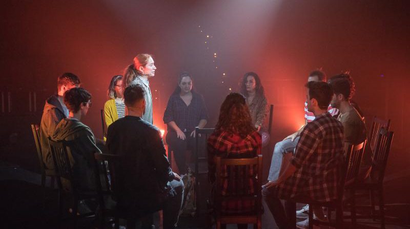 La utilización del espacio con el movimiento coreográfico de Xaro Campo saca el máximo partido de las condiciones del teatro que representa el musical en el centro de la sala, con el público repartido en las cuatro gradas enmarcando el escenario. La versión catalana para ser lo que consideramos un off, junta a 16 actores y cuatro músicos, lo cual no está nada mal, aunque como casi siempre el talón de Aquiles de esta sala está en el sonido, que hace imposible entender los textos de las canciones grupales. Lástima porque suelen programar musicales muy interesantes.