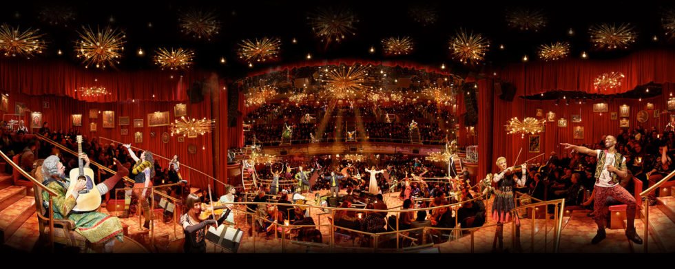 Este musical marca el debut en Broadway de los dos protagonistas. Fue nominado a 12 Premios Tony, si bien consiguió sólo los de mejor diseño escénico y de iluminación, muy merecidos porque cuando entras al patio de butacas asombra ver al público distribuido en todo el espacio, incluso se han habilitado plataformas a diferentes alturas entre las filas de butacas tanto de platea como del escenario, de forma que dirías que desde la entrada a la platea hasta el fondo del escenario una manta de público cubriese todo el espacio.