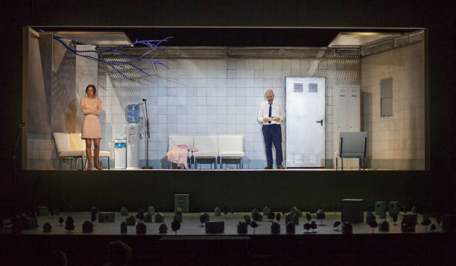 El texto es intenso, con un léxico atrevido principalmente en boca de Una, personaje que posee a Irene Escolar con toda su rabia, despecho e insultos disparados contra un controlado José Luis Torrijo, que trata de que la situación no salte por los aires y sepan fuera de aquella habitación de su pasado. La habilidad de Harrower para ir administrando información sobre Una, sobre Ray, haciéndonos cambiar nuestra opinión sobre de lo sucedido, dándonos poco a poco las piezas que nos ayuden a recomponer el puzzle de aquella noche, adquiere en ocasiones carácter de thriller y Carlota Ferrer lo ha utilizado sabiamente con la separación de la acción en dos niveles, uno en la parte superior, enmarcado como si estuviésemos viendo una película y otro en un primer plano que representaría la ciudad donde ocurrió todo años atrás, diseñada con casitas de pájaro emulando los edificios, como un guiño al título de la obra.