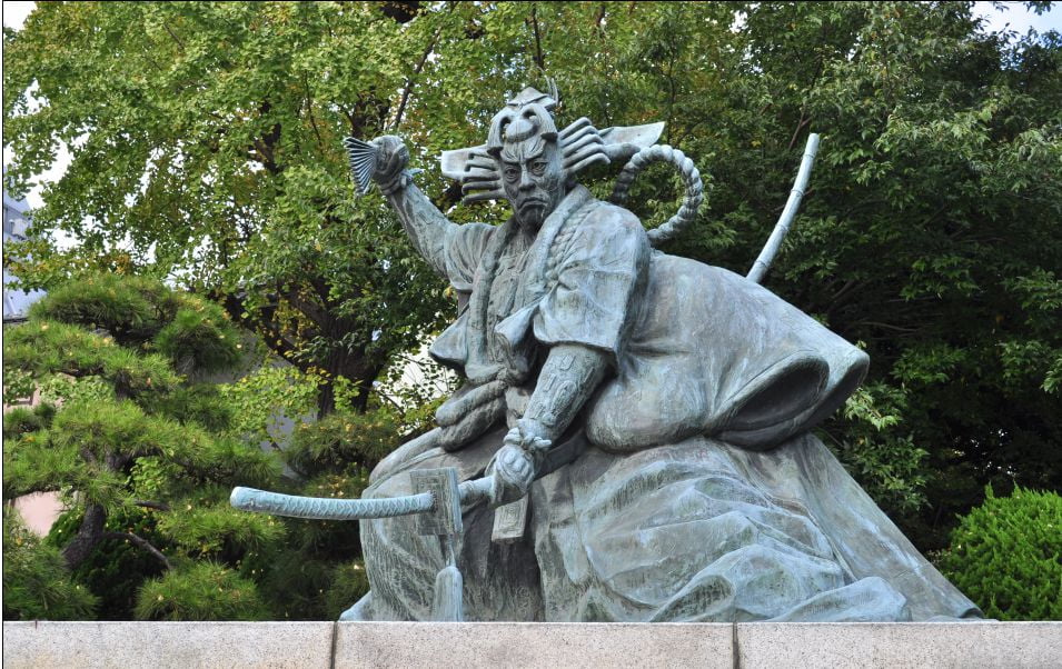 estatua de Ichikawa Danjūrō IX en Tokio representando su papel más emblemático en la pieza clásica Shibaraku
