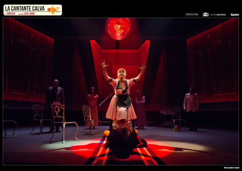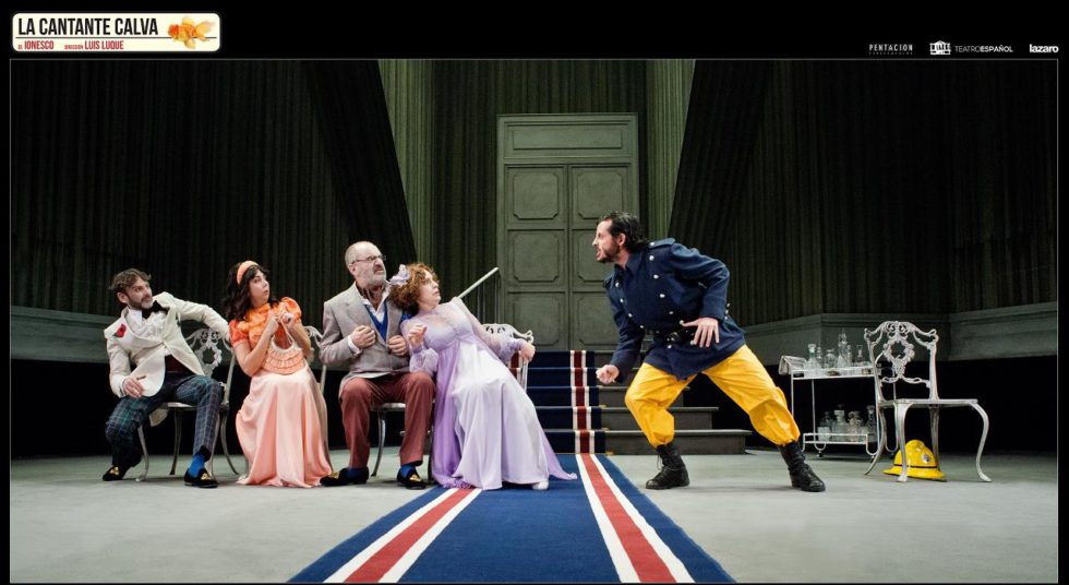 La versión que nos llega ahora, estrenada en 2017 en el Teatro Español de Madrid, dirigida por Luis Luque, cuenta con un reparto de lujo: Adriana Ozores, Joaquín Climent, Fernando Tejero, Helena Lanza, Javier Pereira y Carmen Ruiz que son el reclamo para el gran público que acudirá atraído por sus nombres y se encontrará con esta obra sinsentido, adaptada a nuestros días por Natalia Menéndez que sigue descolocando con sus situaciones absurdas y diálogos inconexos, que me alegro de haber visto, aunque reconozco que no es mi tipo de teatro, ya que puestos a hablar del teatro del absurdo me quedo mucho antes con el de Jardiel Poncela, del que hablábamos hace unos días a raíz de la reposición de “Cuatro corazones con freno y marcha atrás“.