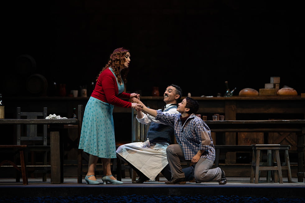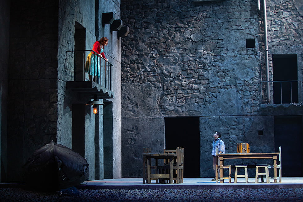 La escenografía de Riccardo Massironi y Ezio Frigerio, colaborador de Vittorio de Sica o Bernardo Bertolucci y el vestuario de Franca Squarciapino, ganadora del Oscar por su trabajo en “Cyrano de Bergerac” juega muy bien con los tonos azules y grises salvo algún detalle en rojo que reserva para Marola, símbolo de la pasión, que dan una armonía visual al conjunto.