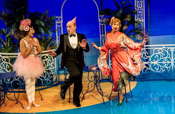La producción de la Menier mantiene el formato original de tres actos y cambia el decorado rápidamente entre actos a la vista del público, variando de emplazamiento algunos elementos que nos permitan situarnos bien en la escuela, en la playa o en el salón del baile del final. Por supuesto, la dirección incide en la exageración gestual de algunos intérpretes, para hacernos sonreir con lo cursi de algunas situaciones, contempladas desde la óptica de hoy en día.