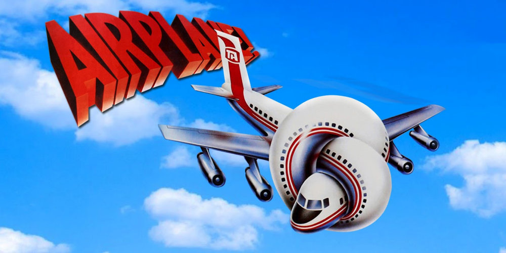 Hay frases de la película que son de por sí tremendos gags: “Elegí mal día para dejar de esnifar pegamento”. “¿Te gustan las películas de gladiadores?”. “¿Alguien de ustedes sabe pilotar un avión?”. No recuerdo otra película con tamaña retahíla de gags. Esa fila de pasajeros esperando su turno para abofetear a una pasajera histérica. La azafata que al cantar con la guitarra desconecta accidentalmente la vía que mantiene a una pasajera. Los viajeros en el aeropuerto corriendo por la terminal de un lado a otro tratando de obedecer a los constantes cambios de puerta dados por megafonía….
