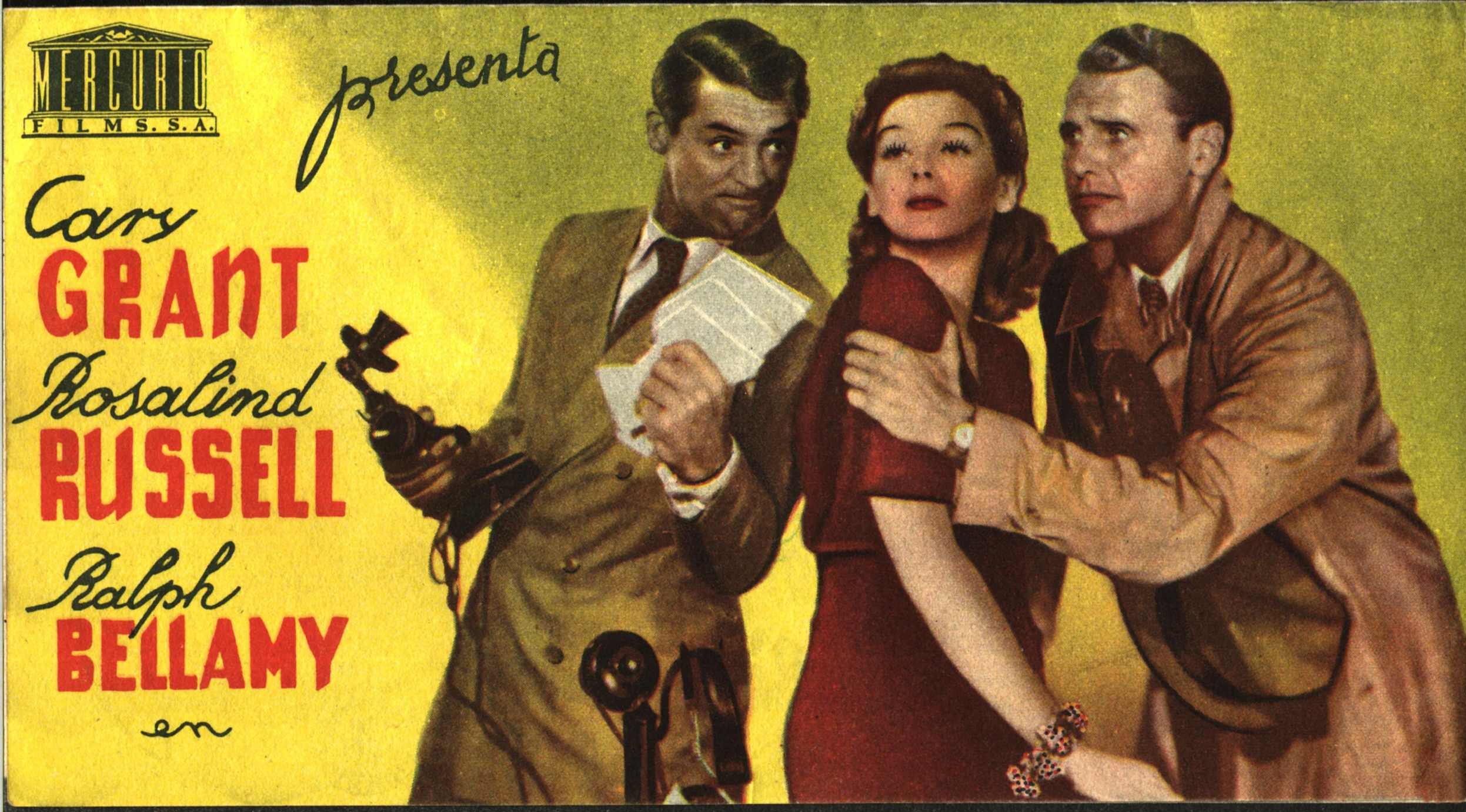 Howard Hawks lleva al cine en 1940 la obra teatral de Ben Hecht “The front page”. Ya había sido llevada al cine en 1931 y todavía volvería de la mano de Billy Wilder en 1974 recuperando la trama original en la que el director de un periódico y su mejor reportero, son dos hombres (Walter Mattheau y Jack Lemmon), pero Hawks se atrevió a hacer de ellos una pareja que estuvieron casados, pero siguen unidos por su amor al periodismo.