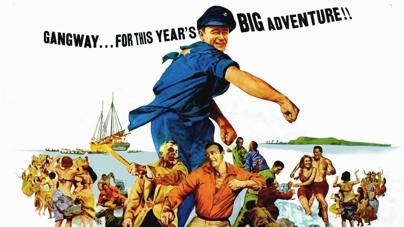 Tras “El hombre que mató a Liberty Valance” John Ford vuelve a unir a John Wayne y Lee Marvin, en este caso en una comedia de aventuras, en la que nos lleva a la Polinesia. Ford, lejos del western, compone un guion plagado de personajes secundarios que dan cuerpo a la historia, ayudando a recomponer el rompecabezas del que en ocasiones sabemos más que la protagonista y en otras estamos tan perdidos como ella, hasta que sin necesidad de que nos lo den mascado terminamos por colocar todas las piezas.
