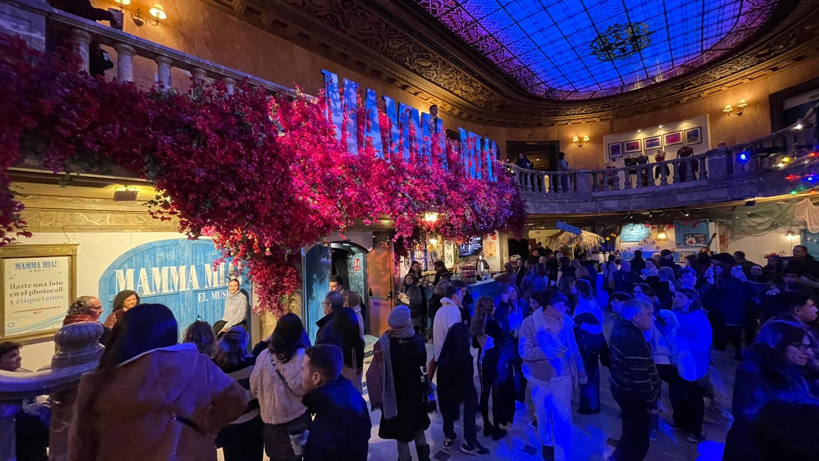 Me llamó la atención ver cómo la gente hace cola en la puerta, porque abren una hora antes de que empiece la función, para que el público pueda hacerse fotos en el hall del teatro, ambientado con detalles y guiños para el aficionado, que se siente como en la isla griega en la que se desarrolla el musical. Esta producción es totalmente diferente de la franquicia original, salvo el libreto y las canciones, porque el resto es completamente nuevo.