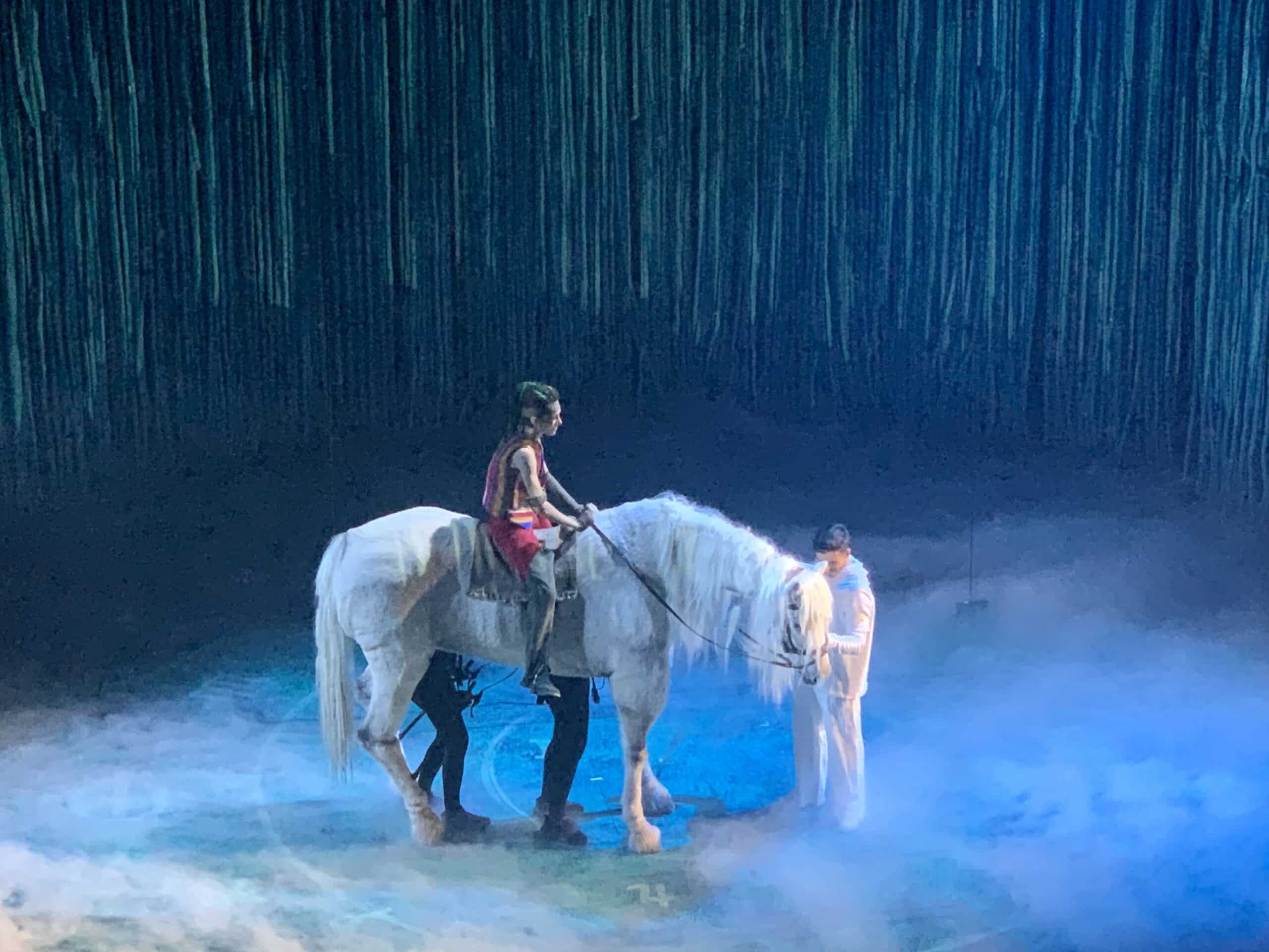 El tándem Macías-Amador confían en el tirón de títulos famosos pero densos, difíciles de compactar de forma fluida. Sus trabajos se apoyan en una buena partitura, músicos en directo, una puesta en escena espectacular, repartos muy numerosos, buenas voces y todo eso lo consiguen. En el caso que nos ocupa tenemos un vestuario muy vistoso, marionetas articuladas, un caballo que parece real, momentos con fuego, otros con agua, proyecciones, dragones voladores, etc. espectáculo perfecto para un público infantil que con tanto efecto especial aguanta sin pestañear las dos horas y media de duración.