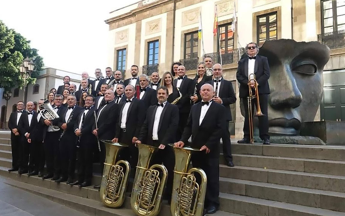 La jornada la terminamos a las 20 horas asistiendo a otro de los eventos programados. Un concierto al aire libre en la Plaza de España. La Banda Municipal de Música de Santa Cruz, dirigida por Juan Antonio Domínguez Martín, desarrolló el siguiente programa: