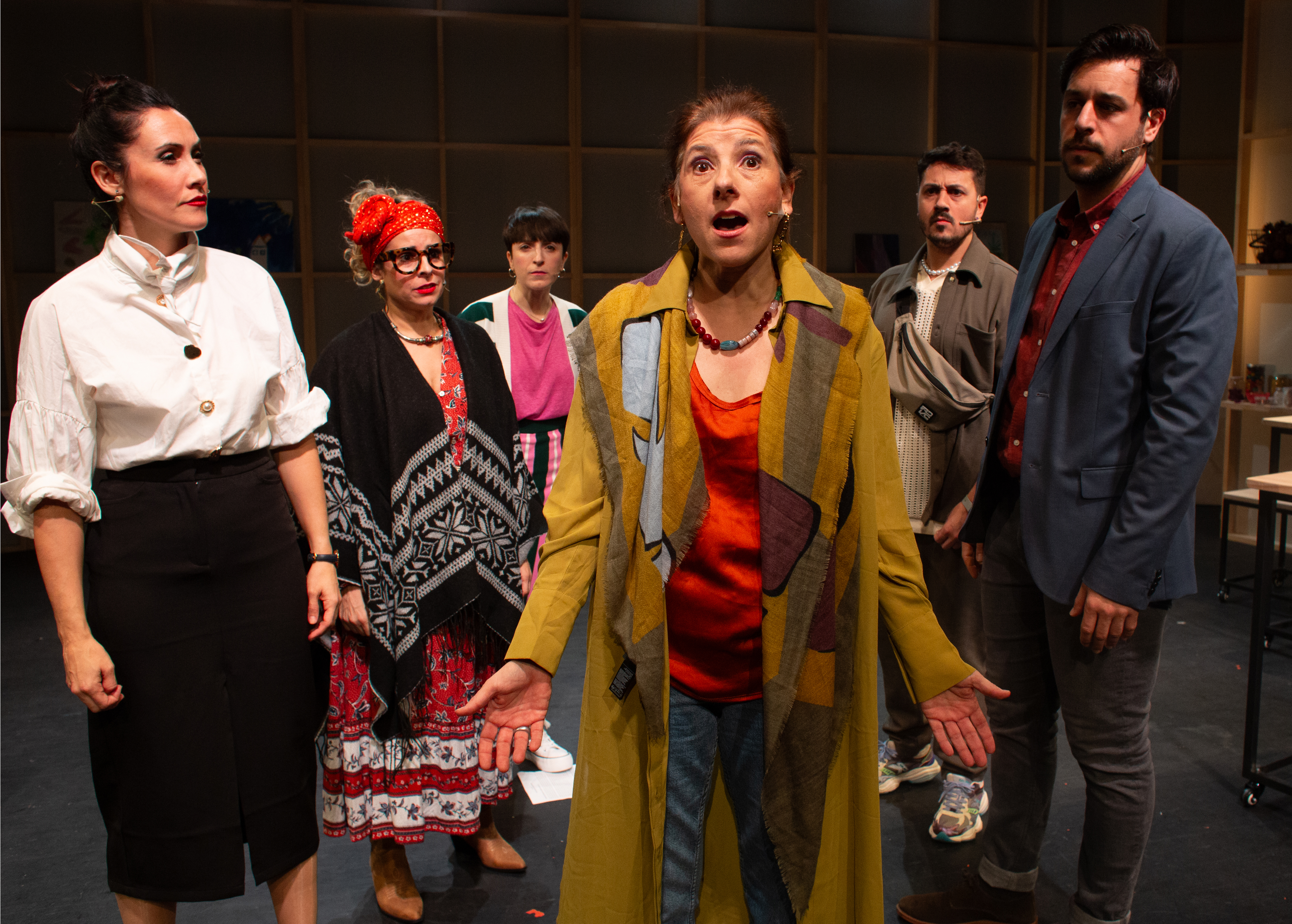 Siete actores muy bien elegidos. Neus Alborch es una joven preocupada por su padre, Fer Barber es un instagramer famoso, Aitor Caballer es un joven descentrado desde que le abandonó su novia, Empar Esteve es la funcionaria que dijo basta a su trabajo, Mamen Mengó es una simpática pitonisa, Gemma Miralles es una mujer que tras ejercer de madre reclama su derecho a vivir y Pau Vercher es un repartidor de comida a domicilio.