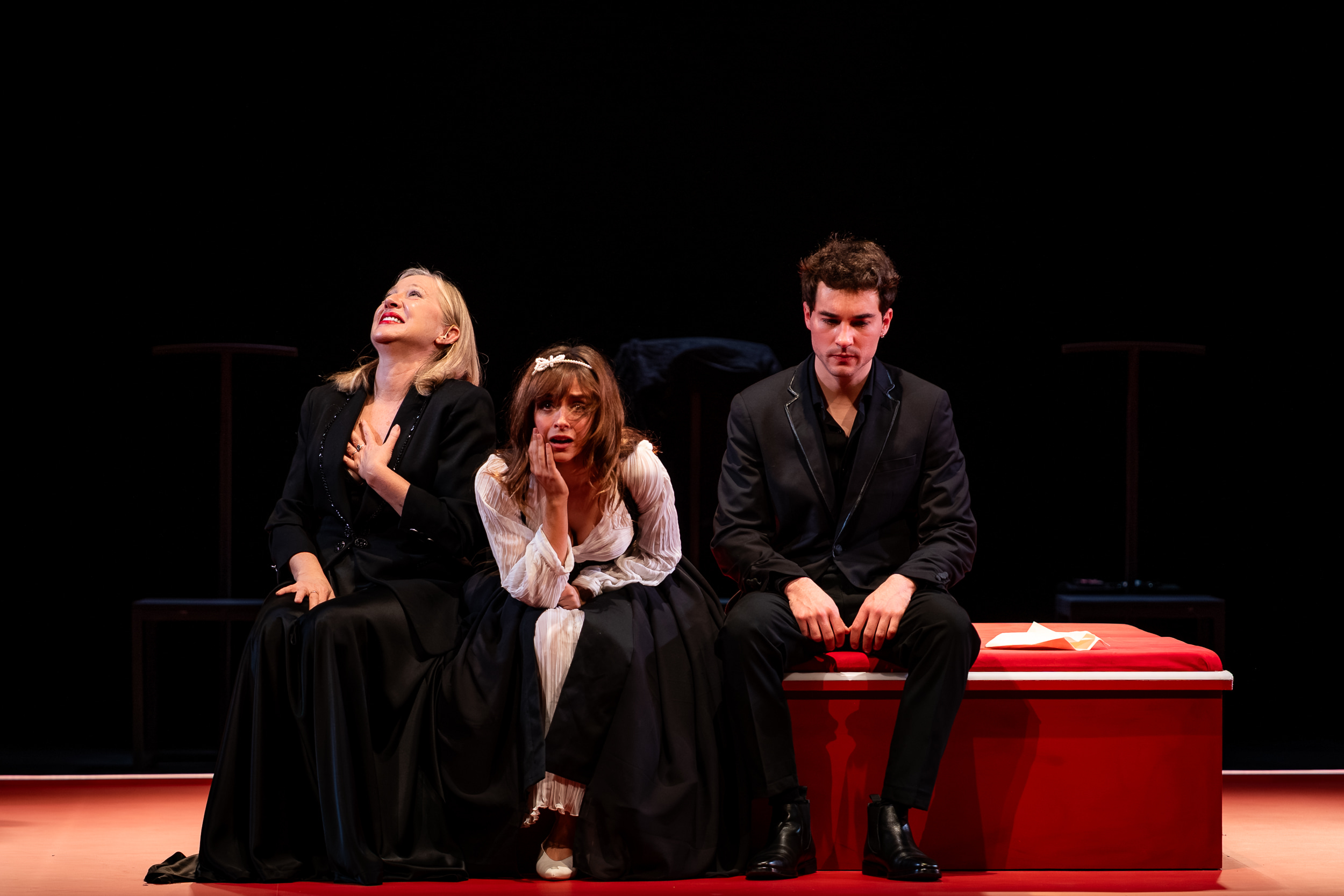Roberto Enríquez, Lucía Caraballo y Ángela Cremonte en “Las amistades peligrosas”