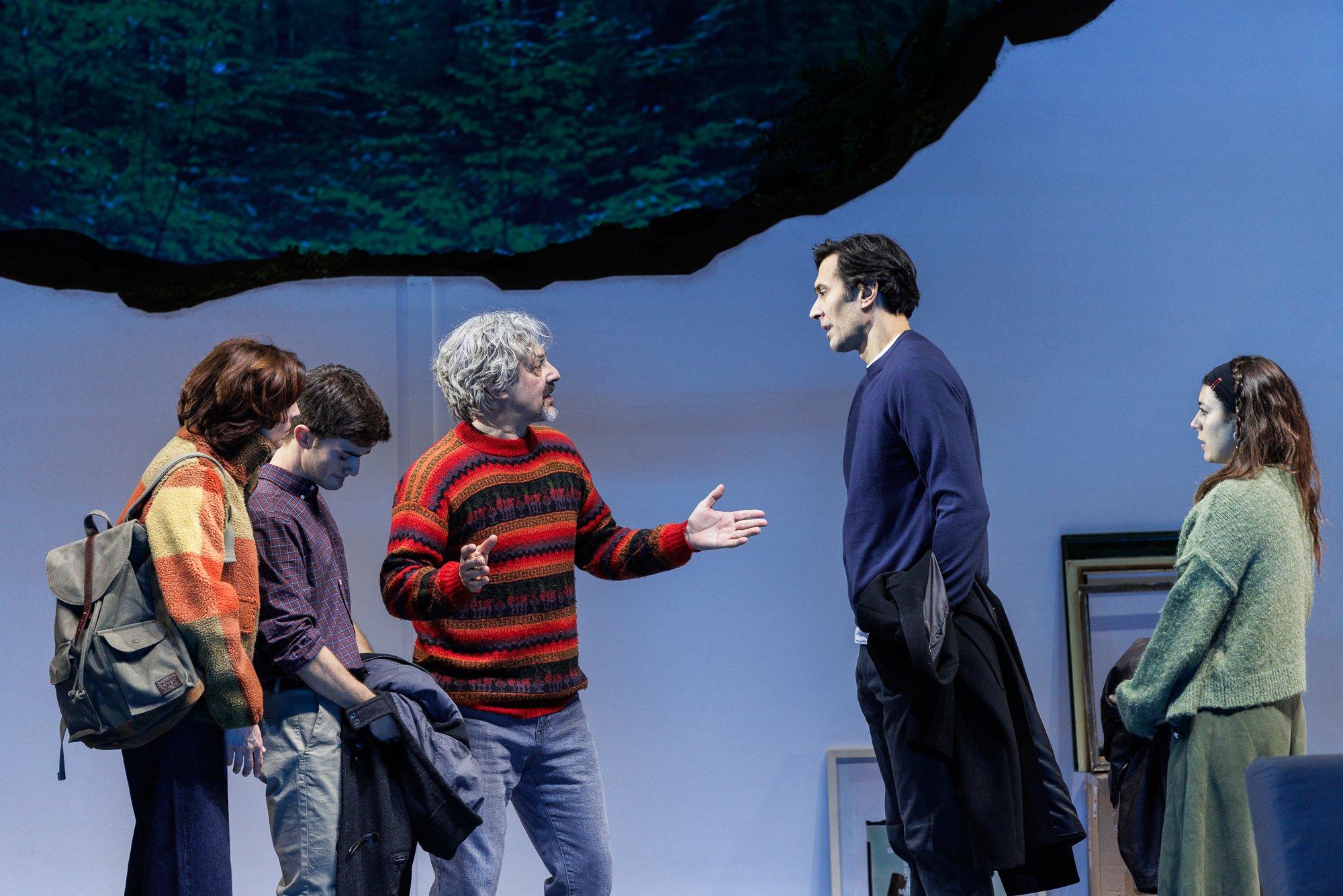 La maestría de Sanzol con esos diálogos que nos suenan tan naturales. Esos detalles cotidianos como la llamada de atención sobre el tiempo que se lleva usando el mismo jersey y la utilidad de la máquina quitapelusas nos provocan esa sonrisa, reconociéndonos y empatizando con esos personajes tan cercanos. Fernando Velázquez, compositor habitual de Sanzol ha escrito la escasa música original que necesita la obra. Las casi dos horas y media de la función pasan en un suspiro.