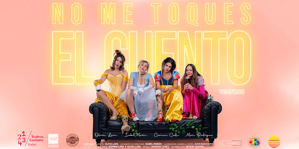 NO ME TOQUES EL CUENTO es una comedia gamberra, divertida y reivindicativa que cuenta la historia de cuatro princesas Disney (Blancanieves, Bella, Aurora y Cenicienta) tras el típico final de cuento de “fueron felices y comieron perdices”. En cierta medida la premisa es similar a “Desencantadas”, la obra que actualmente se representa en el teatro Lara, aunque en “No me toques el cuento” el argumento es más uniforme y lineal y no está formado por sketches y actuaciones musicales sueltas como en “Desencantadas”. Es una obra escrita y dirigida por Olivia Lara, junto con las aportaciones que el resto de las actrices fueron introduciendo en los ensayos previos. Fue estrenada en julio de 2019 en Teatros Luchana, y tras dos...