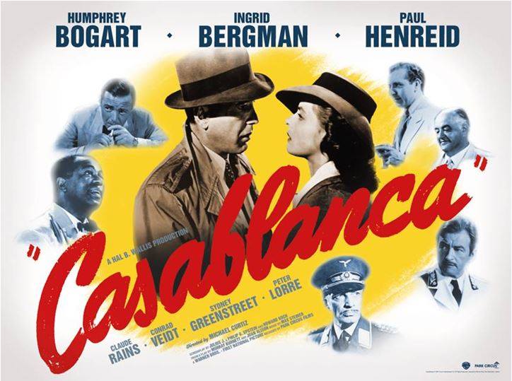 “CASABLANCA” es la película que hace honor al título de la mítica canción que canta Sam al piano “As time goes by” y ha pasado desde 1942 cuando se estrenó, pero el tiempo no pasa por ella. Es un canto a la libertad, al amor, a la lealtad, a la amistad, a la integridad. Unos valores que siempre son de admirar. Todo ello orquestado y dirigido por Michael Curtiz en la película por la que será siempre recordado. No solo tiene a Humphrey Bogart con Ingrid Bergman haciendo saltar chispas con sus miradas, ante la atenta mirada de Paul Henreid, el tercero en discordia de la pareja. Hay todo un cúmulo de secundarios de lujo como Claude Rains, Peter Lorre,...