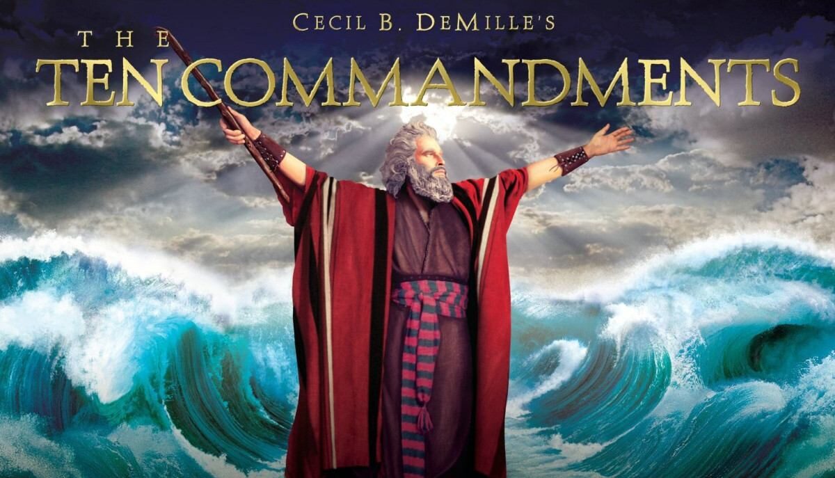 Fue la última película dirigida por Cecil B. DeMille en 1956. Ya había dirigido una versión muda, en blanco y negro, con el mismo título en 1923, pero DeMille quiso aprovecharse del color y de la pantalla ancha que le daba Vistavisión, para rodarla de nuevo en escenarios naturales de Egipto y el Monte Sinaí, para que luciese en todo su esplendor. La película con algunas licencias cinematográficas. fue bastante fiel a la historia de Moisés, el hebreo que recién nacido, fue dejado en una cuna en el Nilo que encontró la hija del faraón y tomó al niño como hijo suyo. Moisés con el tiempo se convirtió en el favorito del Faraón, ante los celos del primogénito. Moisés descubre...